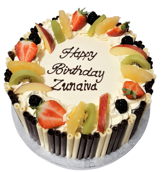 A Vibrant Eggless cake with a Variety of fruits topping giving the cake a summer twist, this cake will surely create a party in your mouth. The Victoria Style sponge cake includes three layers of 100% pure fresh cream layered with creamy heavenly swirls. Be sure to have your guests go Wild at your special event such as Engagement, Birthdays or Wedding. All our cakes can have a personalised message written even while you wait, free of charge.Fresh cream.***Coloured cream may stain. It will taste bitter and has been known to cause hyperactivity in children!***Colour & design may vary.Subject to availability. Please contact your collecting branch before placing your order..Serving numbers are an approximate guideline. Actual portion numbers will vary according to how the cake is sliced.May contain nuts, gluten, soya and milk