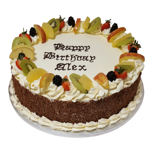 A Vibrant Eggless cake with a Variety of fruits topping giving the cake a summer twist, this cake will surely create a party in your mouth. The Victoria Style sponge cake includes three layers of 100% pure fresh cream layered with creamy heavenly swirls. Be sure to have your guests go Wild at your special event such as Engagement, Birthdays or Wedding. All our cakes can have a personalised message written even while you wait, free of charge.Fresh cream.***Coloured cream may stain. It will taste bitter and has been known to cause hyperactivity in children!***Colour & design may vary.Subject to availability. Please contact your collecting branch before placing your order..Serving numbers are an approximate guideline. Actual portion numbers will vary according to how the cake is sliced.May contain nuts, gluten, soya and milk